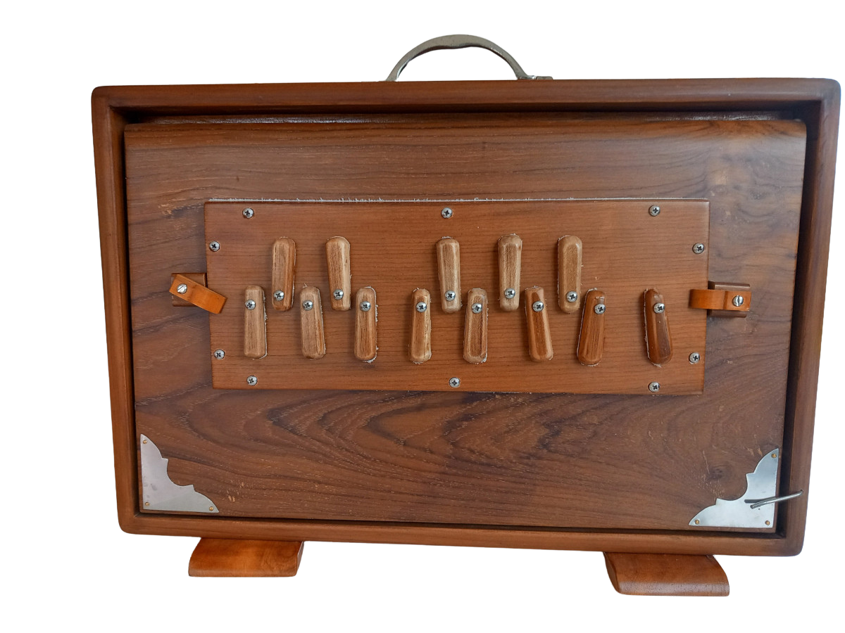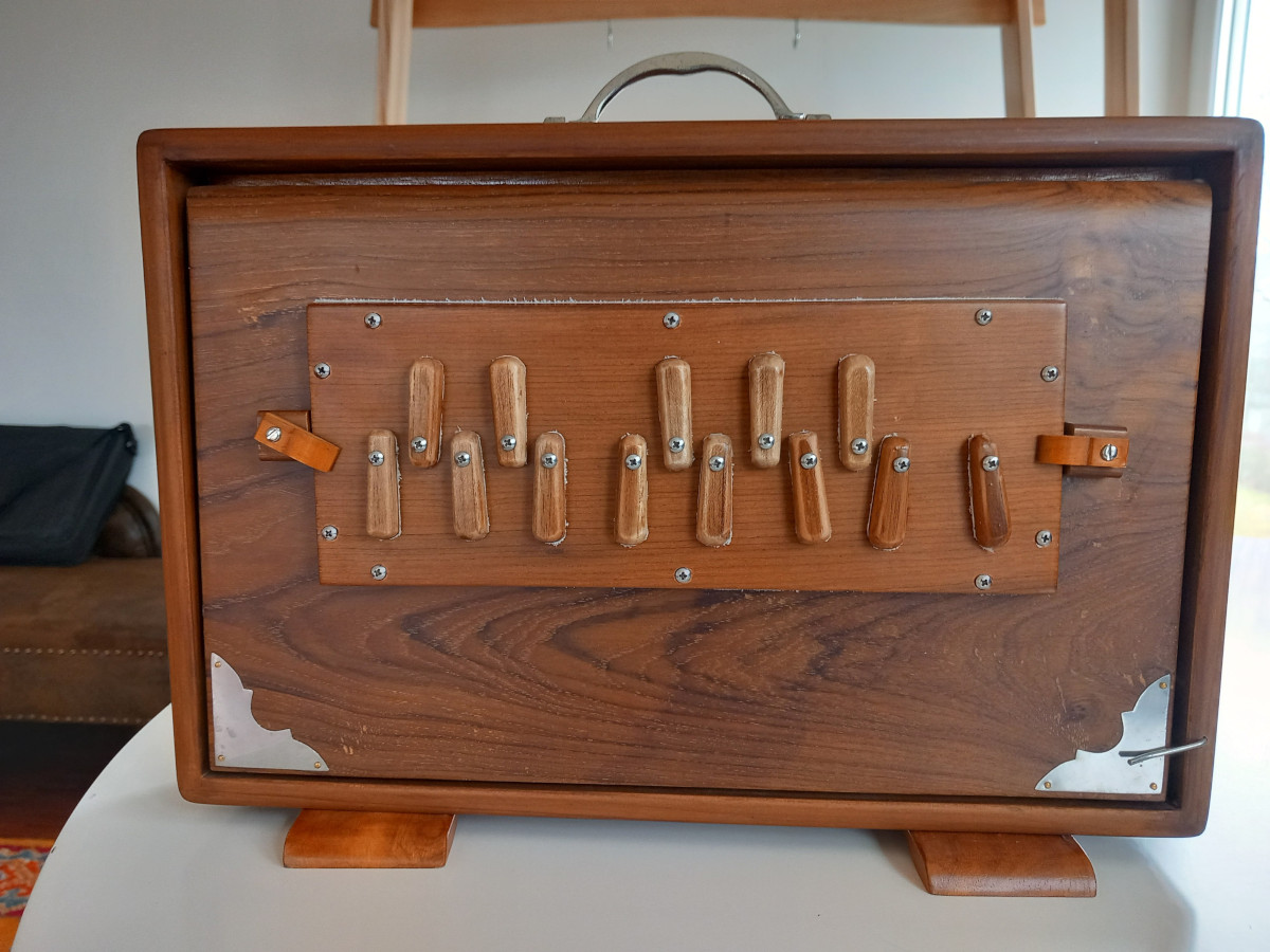 Ein Klanginstrument mit grossem Balgvolumen und weit tragendem Klang. Auch wenn mehrere Klappen geöffnet sind, muss nur langsam gepumpt werden.